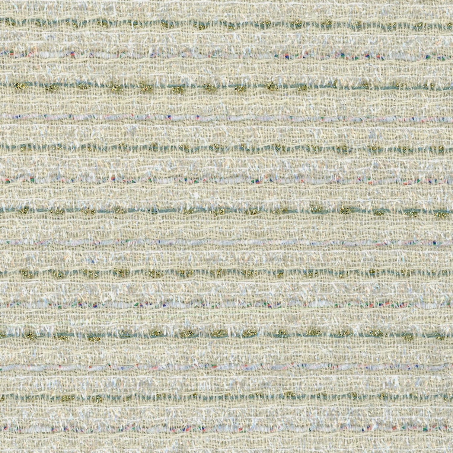 L90044 – Metallic Shiny Gold Green White and Multi Boucl? Stripe Fabric