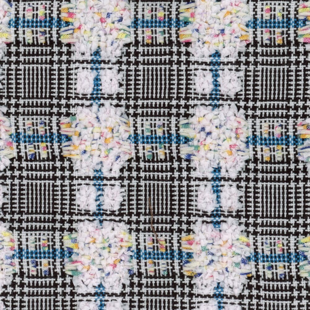 VX31626 – White Black and Multi Textured Check Fabric