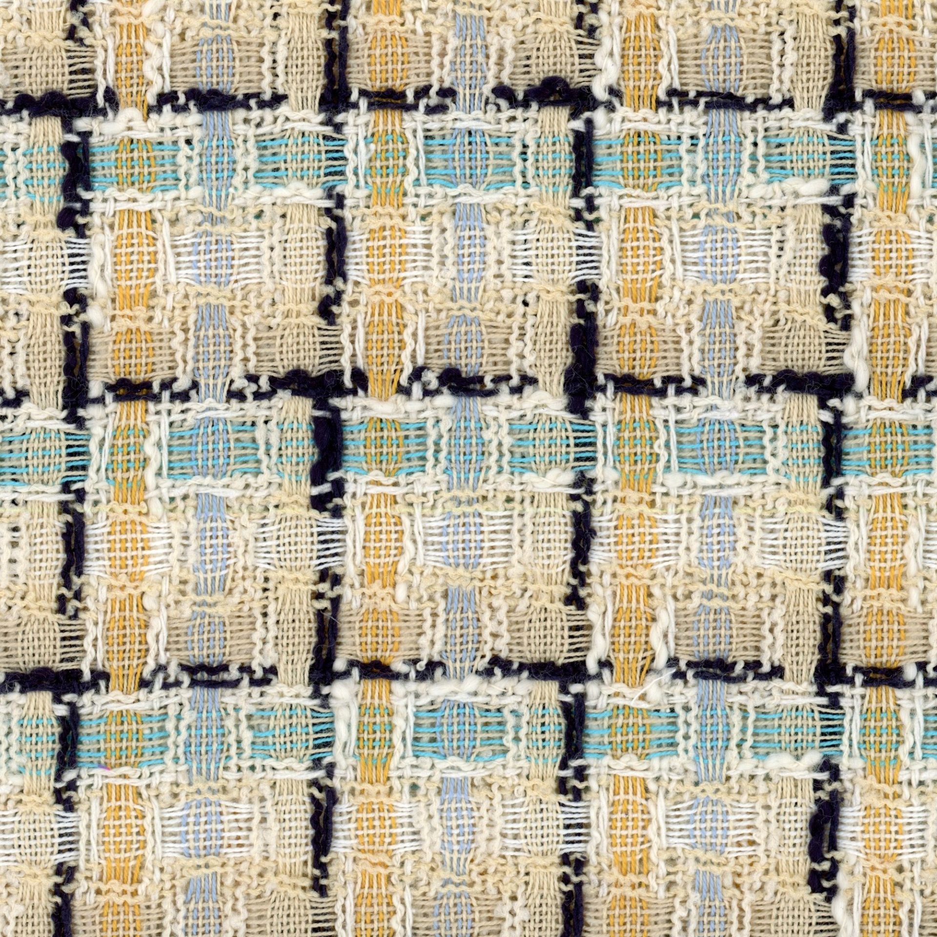X31489 – Dark Navy Cyan Orange Camel White and Cream Large Woven Check Fabric